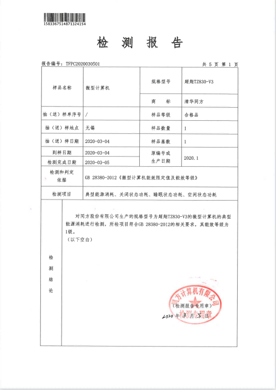 清华同方/THTF TZ830 台式计算机 超翔TZ830(含统信台式机操作系统,统信桌面操作系统V20)