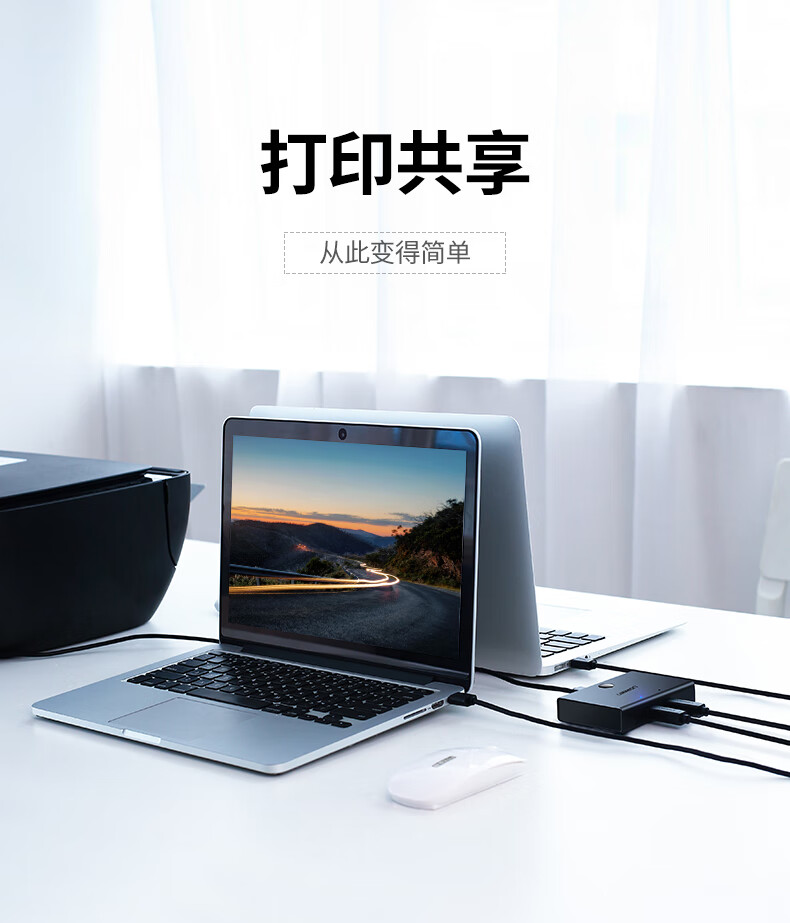 绿联/UGREEN 30345 集线器 绿联打印机共享器转接头数据线连接